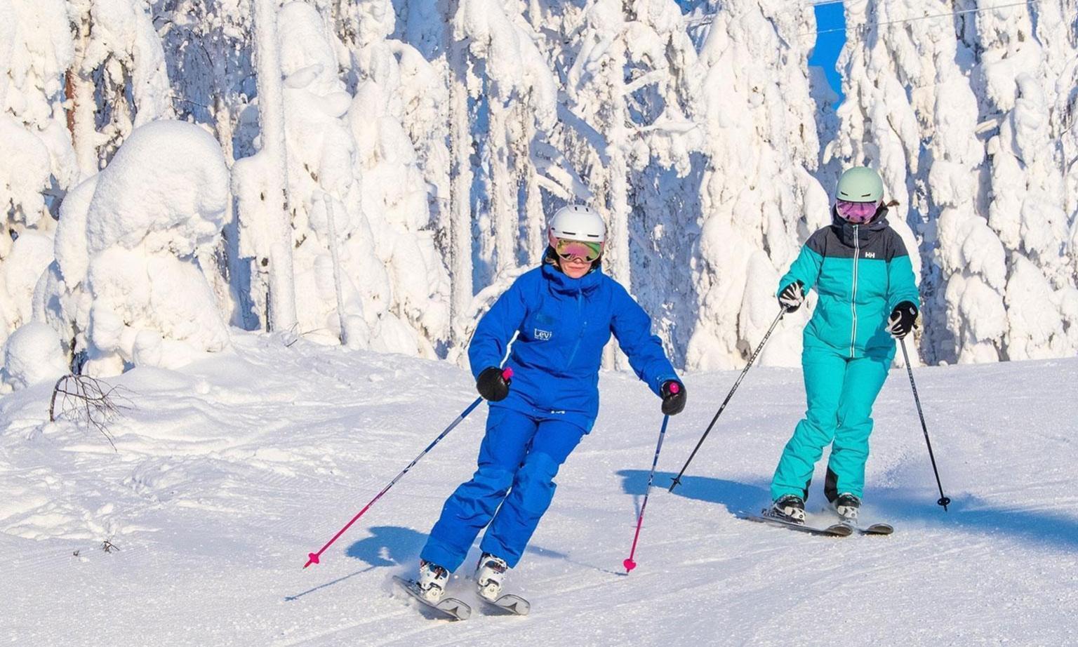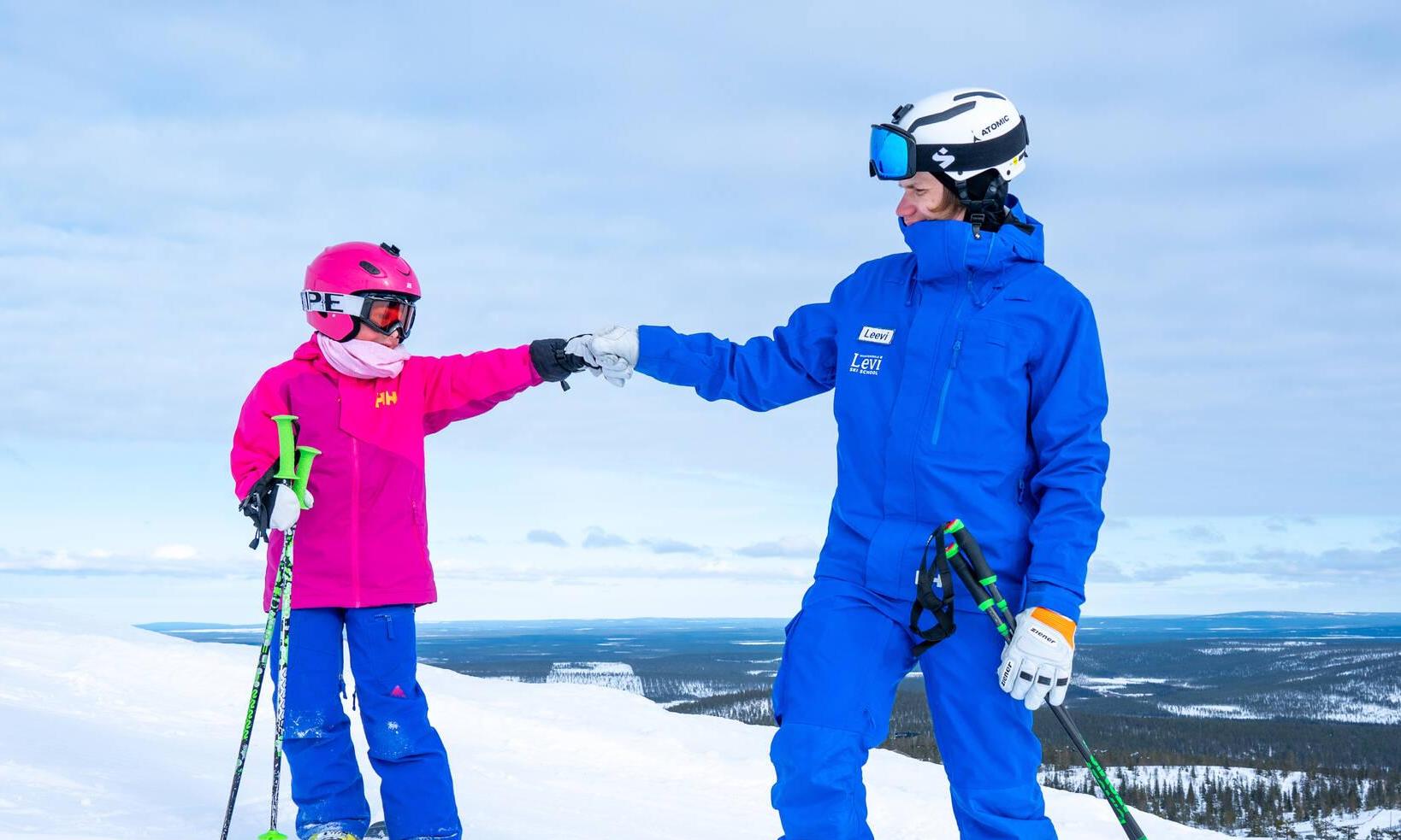 The reservation fee for a lesson or course equals the full price of the session. Levi Ski School is the only authorized provider of commercial ski instruction at Levi slopes. Instructors can be recognized by their signature blue Levi Ski School uniforms.